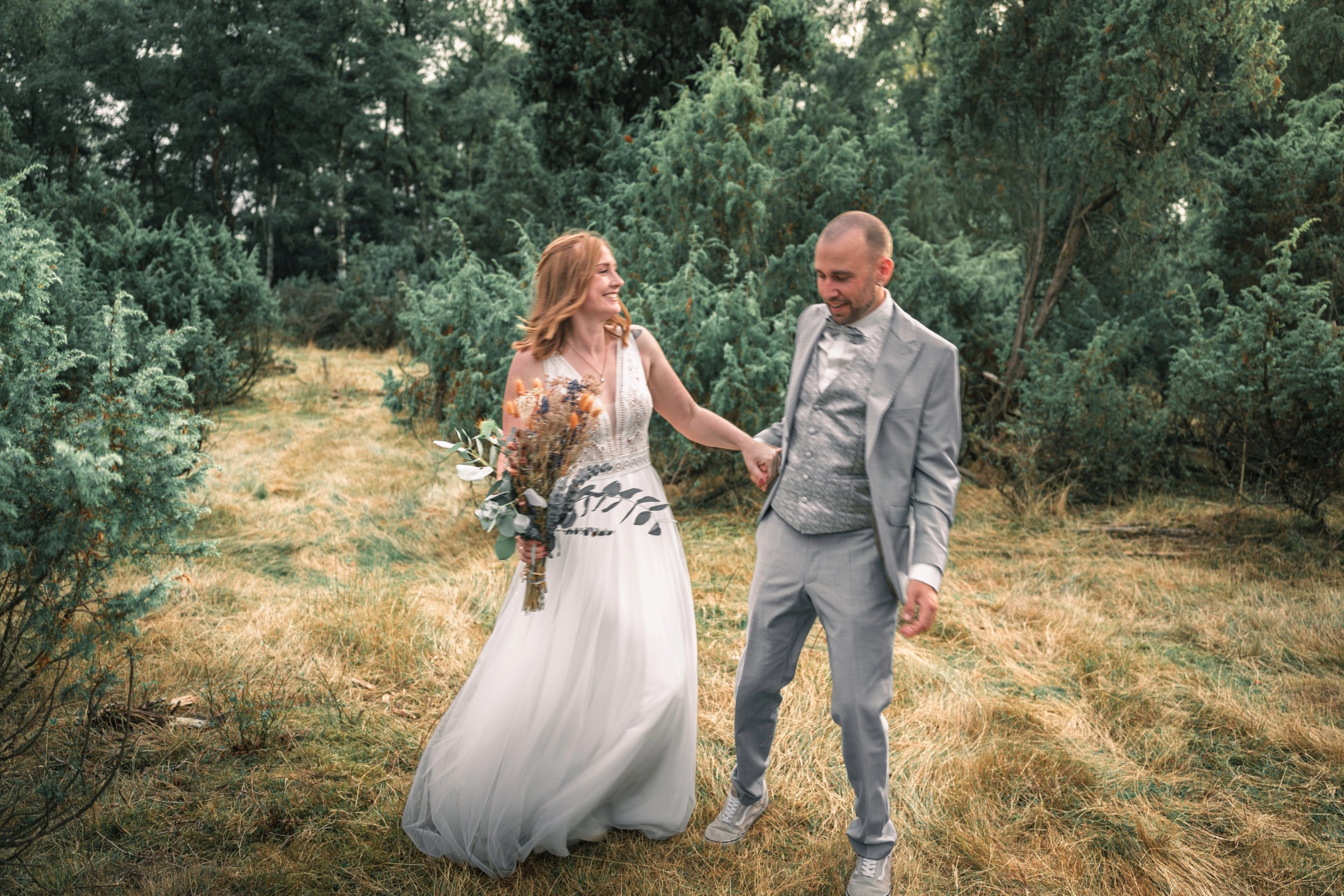 Ein warmes Sommerlicht, die Westruper Heide in voller Blüte – und mitten darin Anna & Leo. Zwischen duftenden Farben und goldenem Sonnenlicht entstand ihr Hochzeitsshooting voller Zärtlichkeit, Lachen und leiser Momente. Die Natur wurde zur Bühne ihrer Liebe, zeitlos und magisch, so einzigartig wie ihre Geschichte.